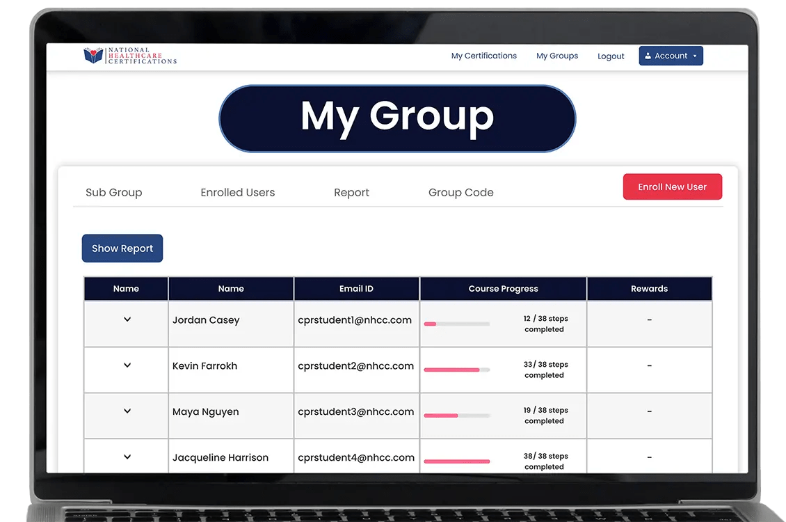 Through your Group Dashboard, get an instant, real-time view into your team members’ progress as they complete their training — with full visibility into their performance on every quiz and exam.